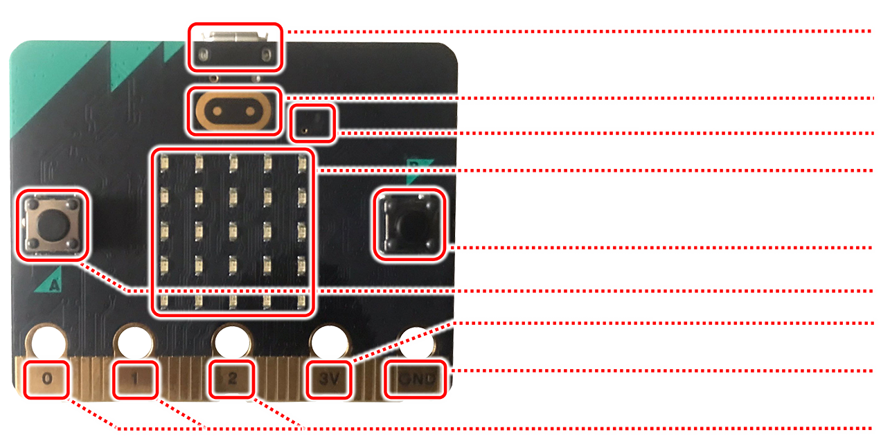 Led rojo: Se enciende cuando la micro:bit está recibiendo energía.